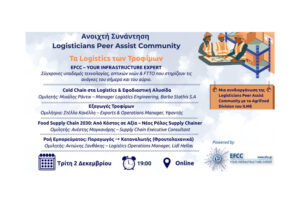 Η Logisticians Peer Assist Community, σε συνεργασία με το Agrifood Division του Ινστιτούτου Logistics Management Eλλάδος (ΙLME) και με την υποστήριξη της EFCC, διοργανώνει ανοιχτή διαδικτυακή συνάντηση με θέμα «Τα Logistics των Τροφίμων», την Τρίτη 2 Δεκεμβρίου στις 19:00.