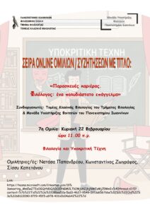 Η 7η online ομιλία “Φιλολογία και Υποκριτική Τέχνη” θα πραγματοποιηθεί εκτάκτως διαδικτυακά την Κυριακή 22 Φεβρουαρίου 2026 και ώρα 11.00 π.μ.