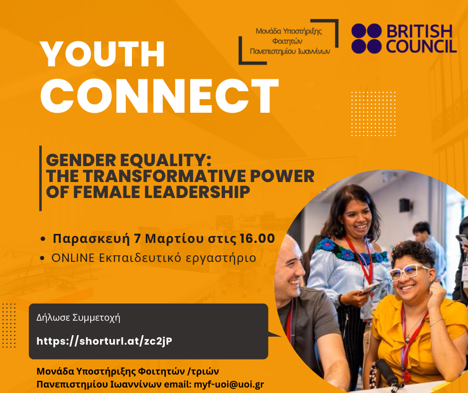 To British Council σε συνεργασία με τη Μονάδα Υποστήριξης Φοιτητών/τριών Πανεπιστημίου Ιωαννίνων (πρώην ΔΑΣΤΑ) προσκαλεί νέες και νέους με ενδιαφέρον σε θέματα έμφυλης ισότητας σε ένα τρίωρο διαδραστικό Εκπαιδευτικό Εργαστήριο που θα πραγματοποιηθεί διαδικτυακά την Παρασκευή 7 Μαρτίου 2025 και ώρα 16:00.